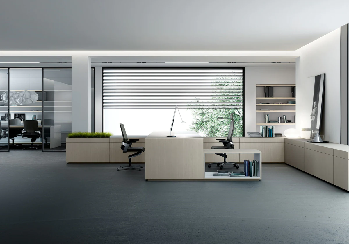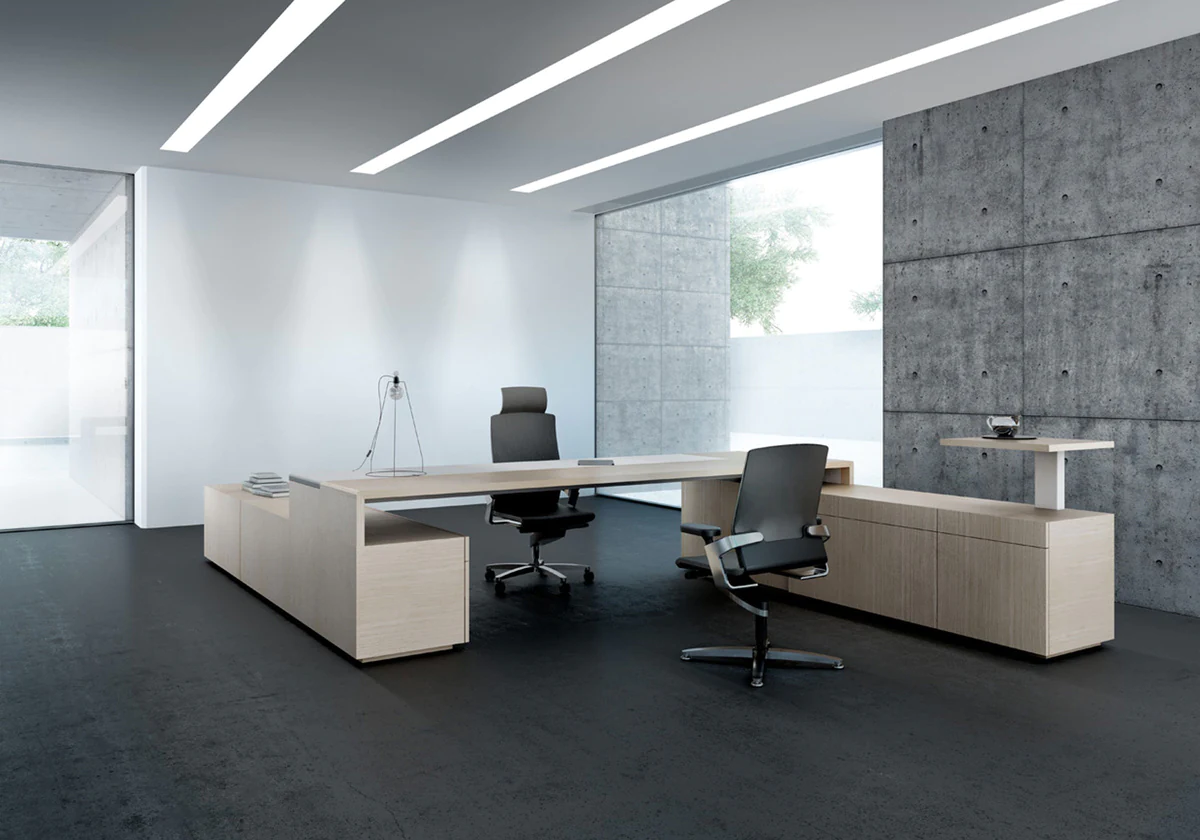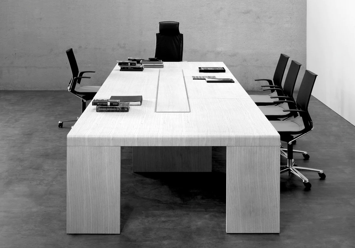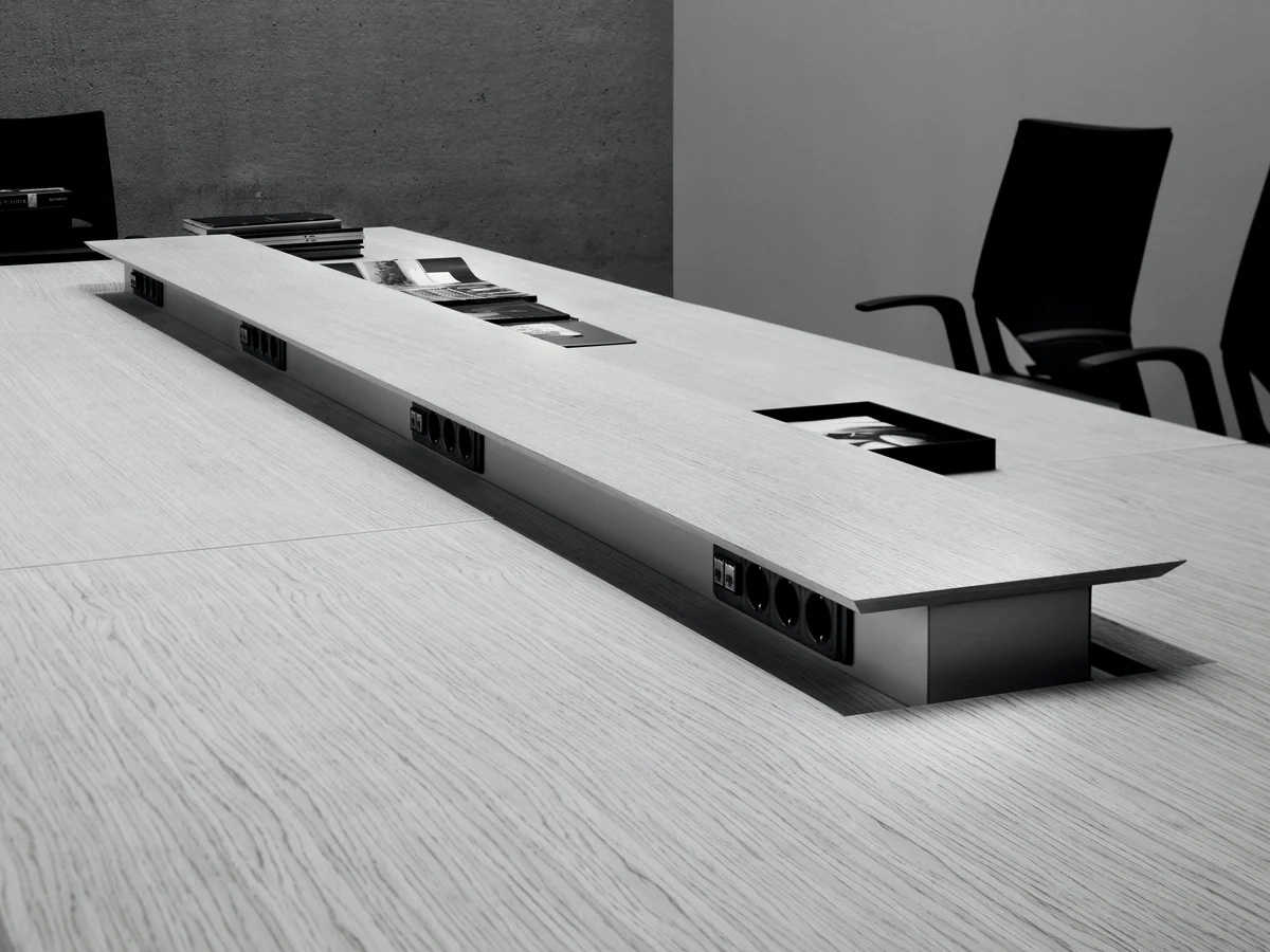 A collection of executive furniture, the modular design of which allows the modern workplace to be optimally organized. The h-shaped desktop, reminiscent of a catamaran, reveals the philosophy of teamwork, in which interaction with colleagues and office guests is the starting point.