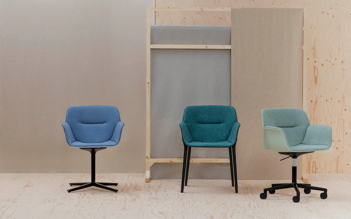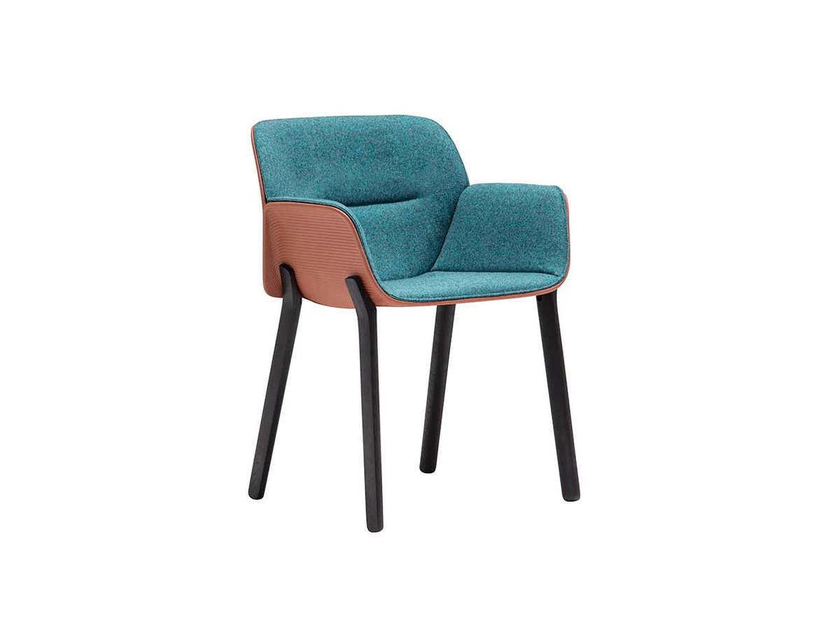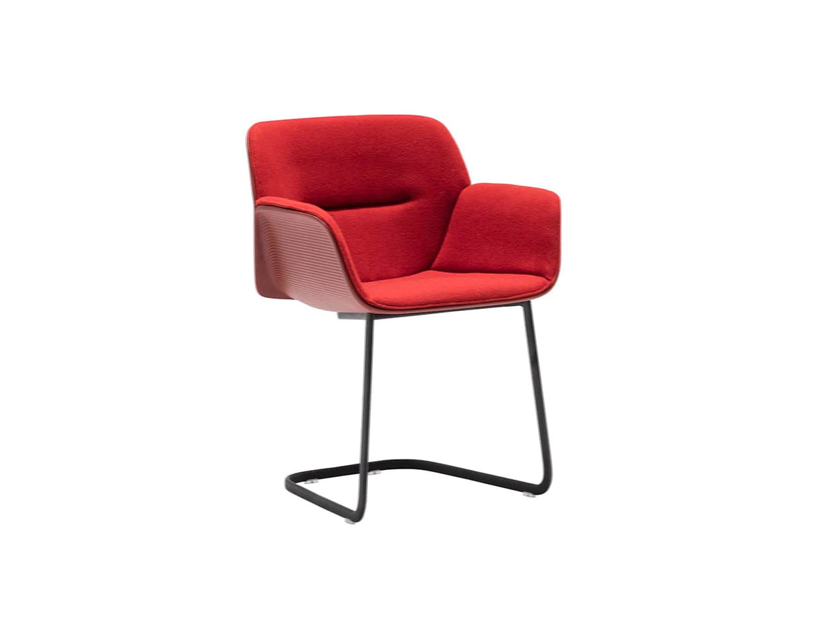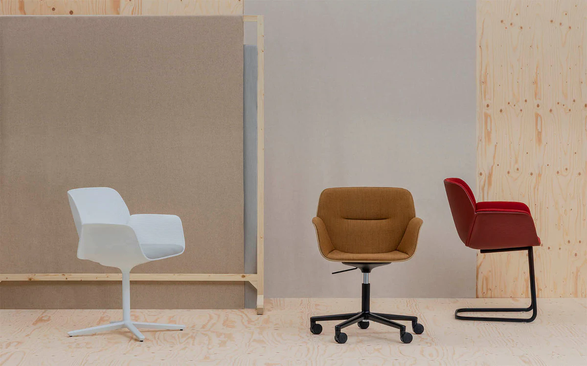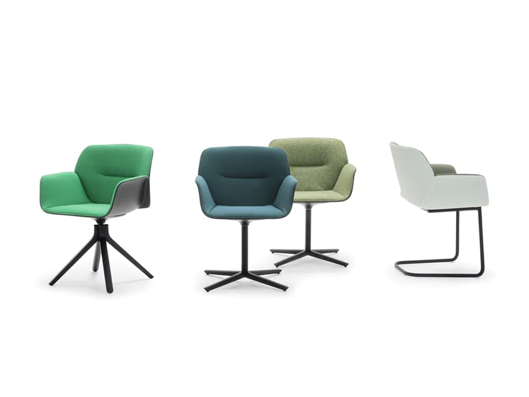 The body of the chairs is made of thermoplastic in various colors. Seat with fabric upholstery. Back upholstery optional. 4 support options.