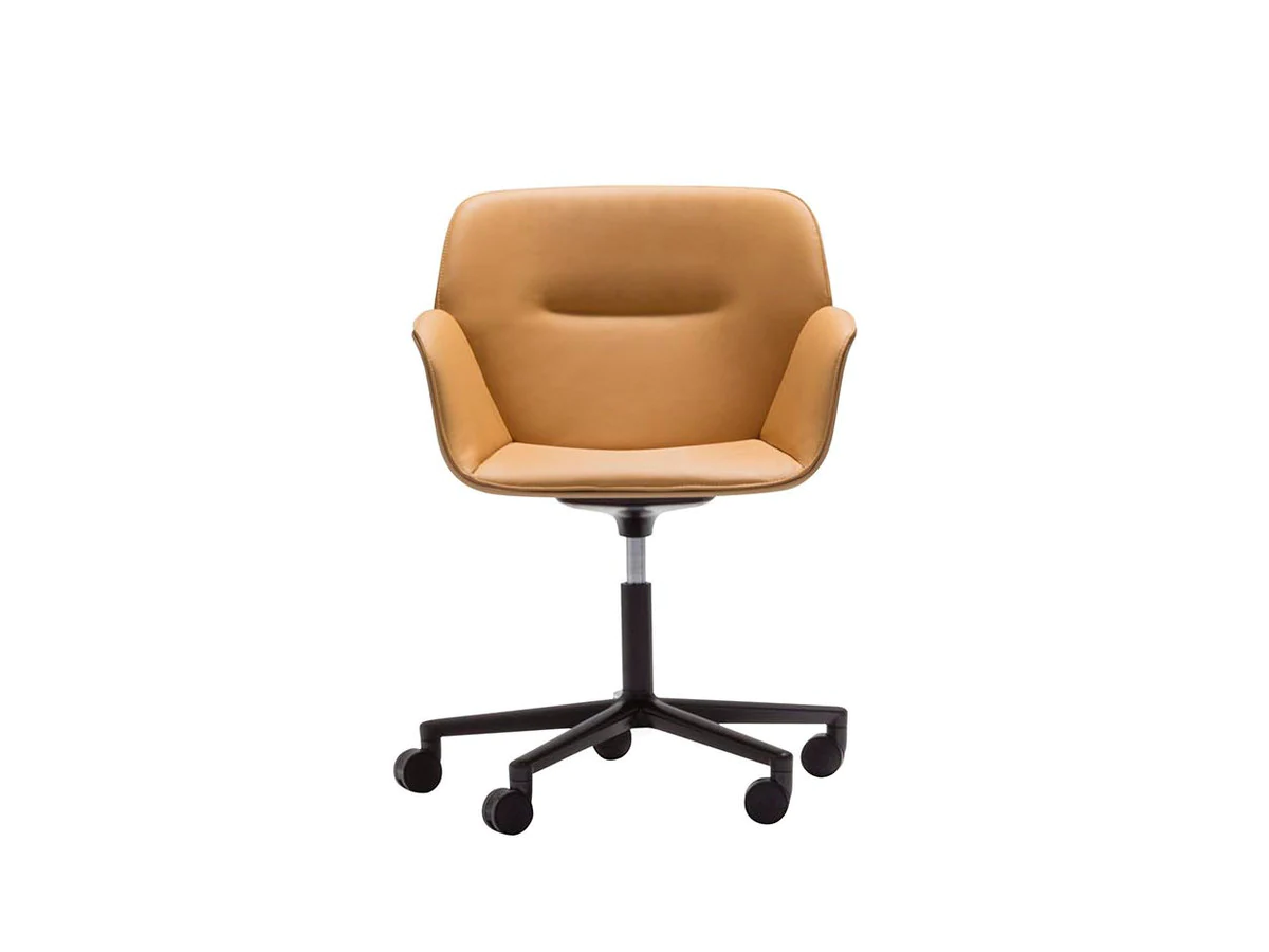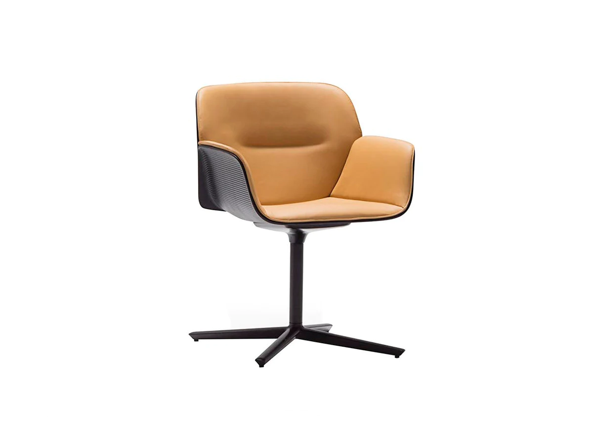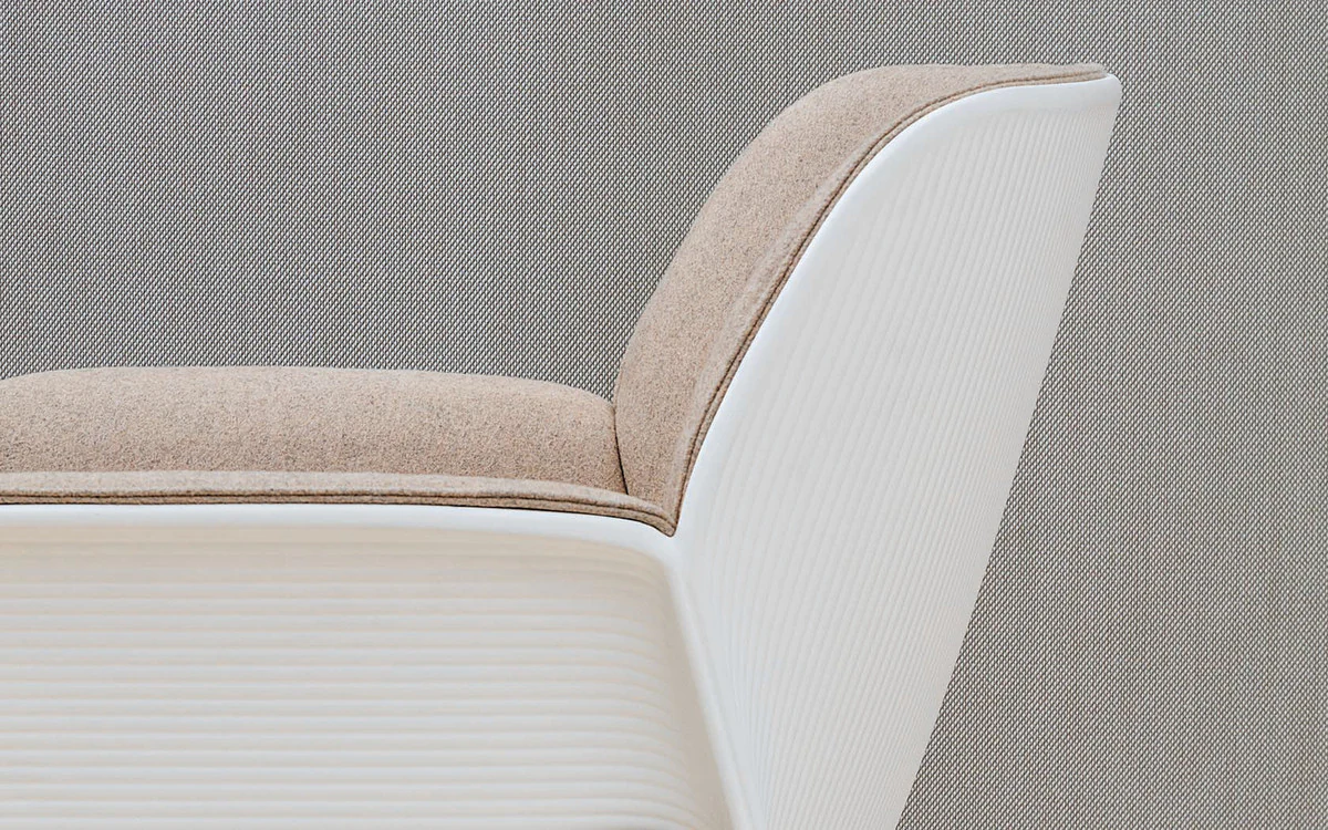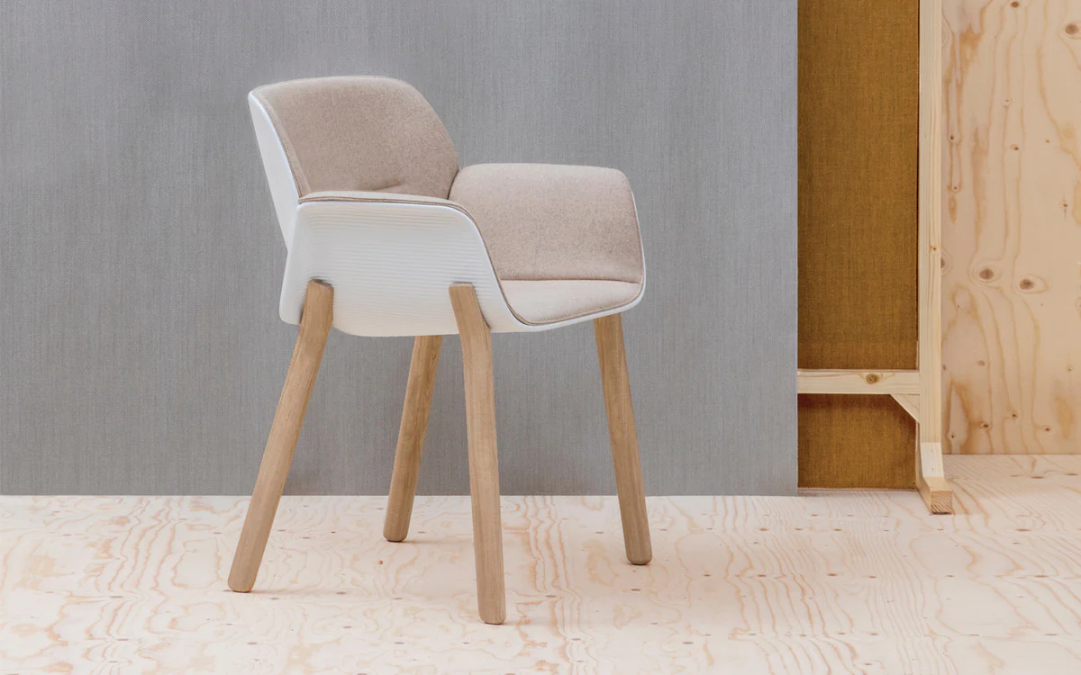 The body of the chairs is made of thermoplastic in various colors. Seat with fabric upholstery. Back upholstery optional. 4 support options.