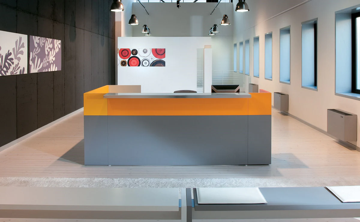 Surprisingly harmonious combination of strict geometric design and bold color schemes. A wide selection of modules allows you to organize a comfortable reception area even in small offices.