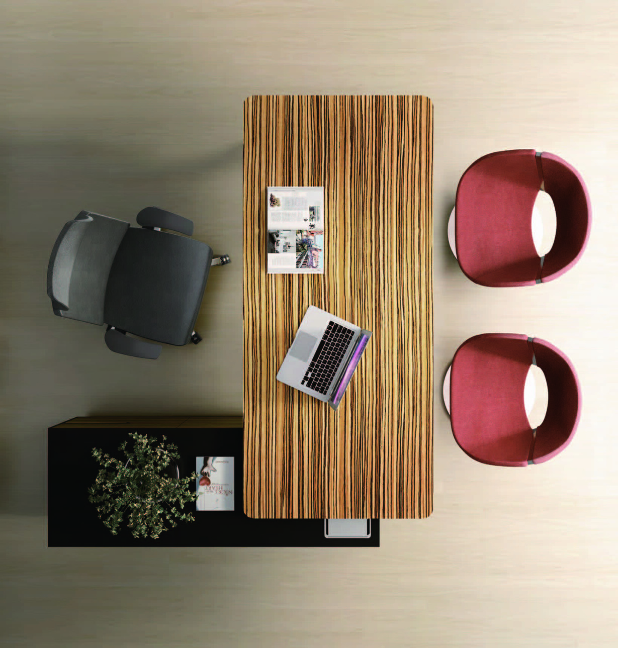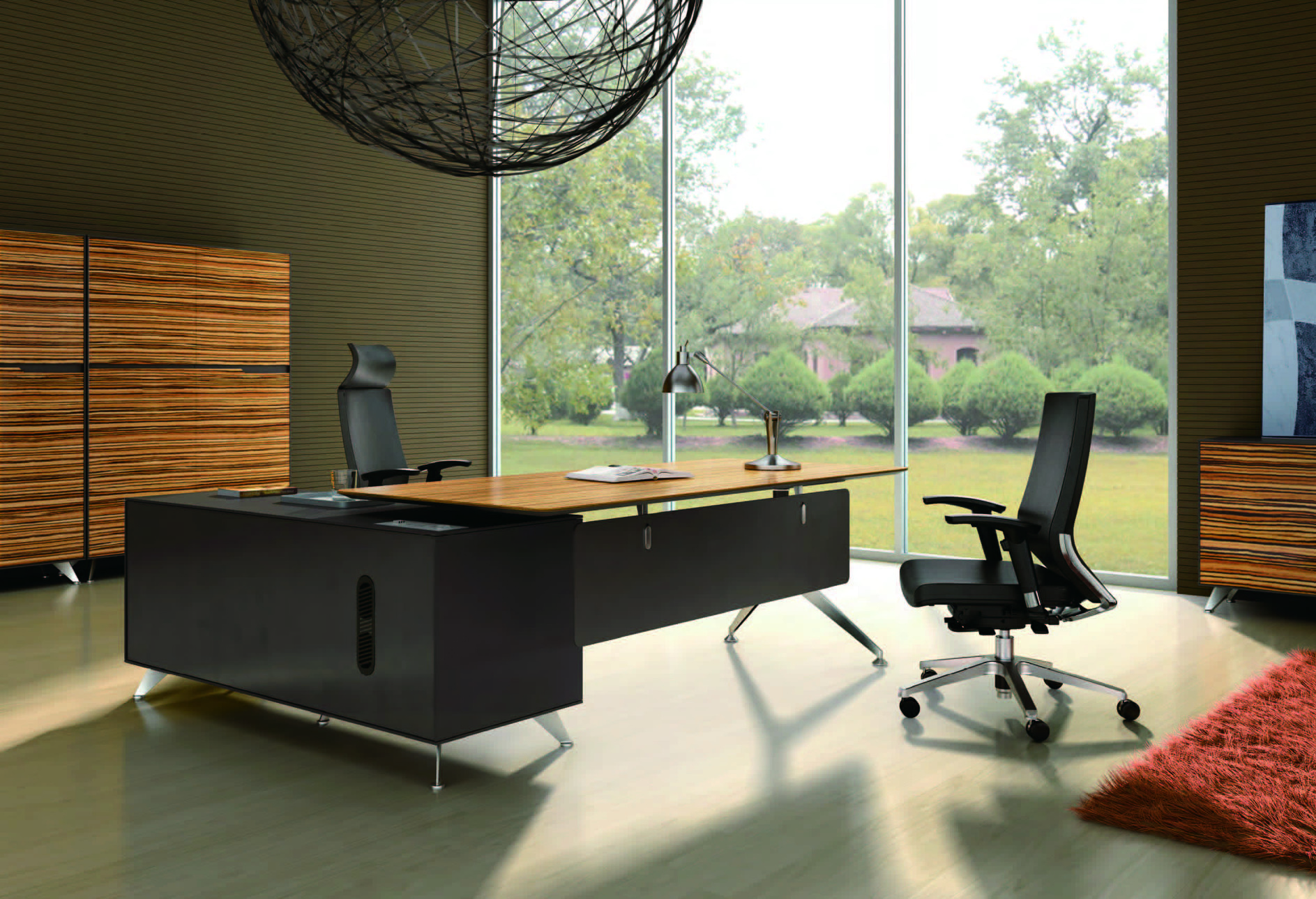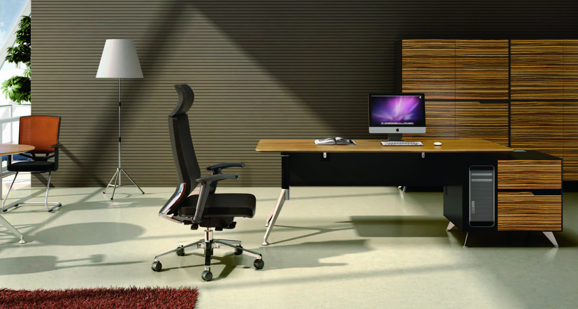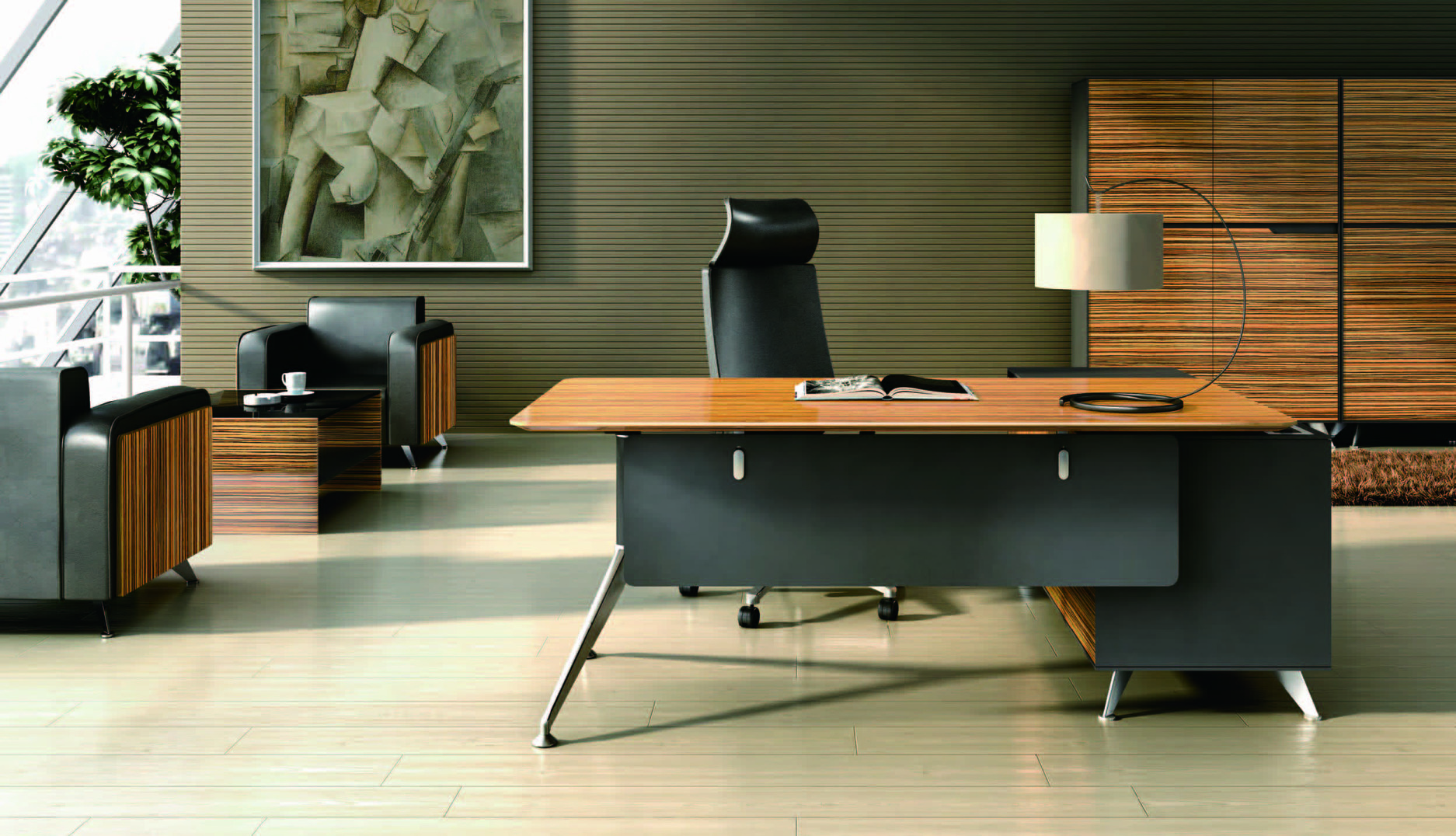 Sharp is a veneer cabinet for executives with exquisite taste. The collection includes executive desks, meeting tables and waiting areas.