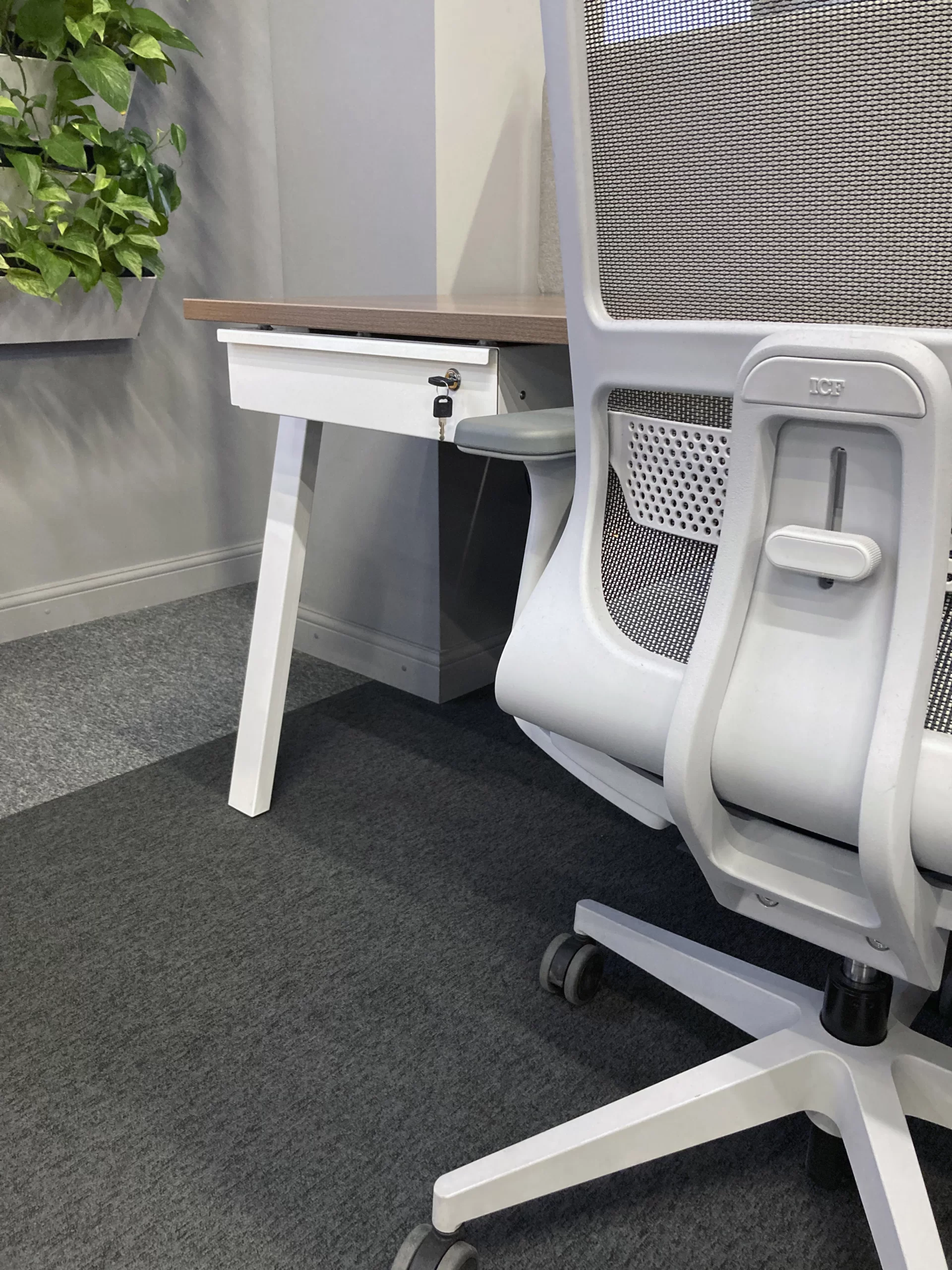 Metal drawer with lock for personal belongings, laptop and stationery. The optimal solution for personal compact storage space in co-working spaces, call centers and client sales offices.