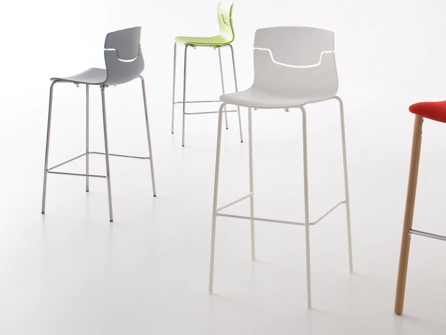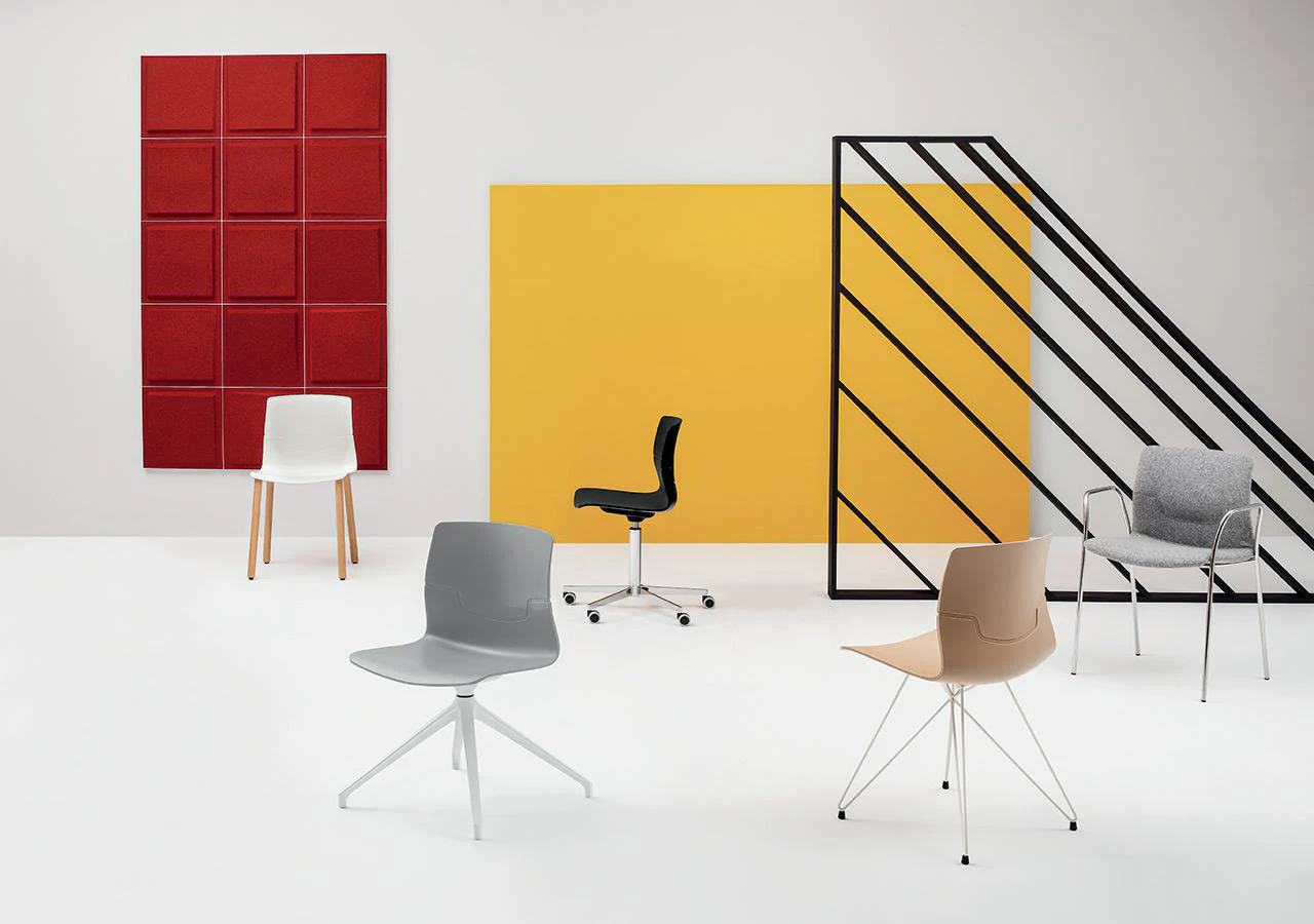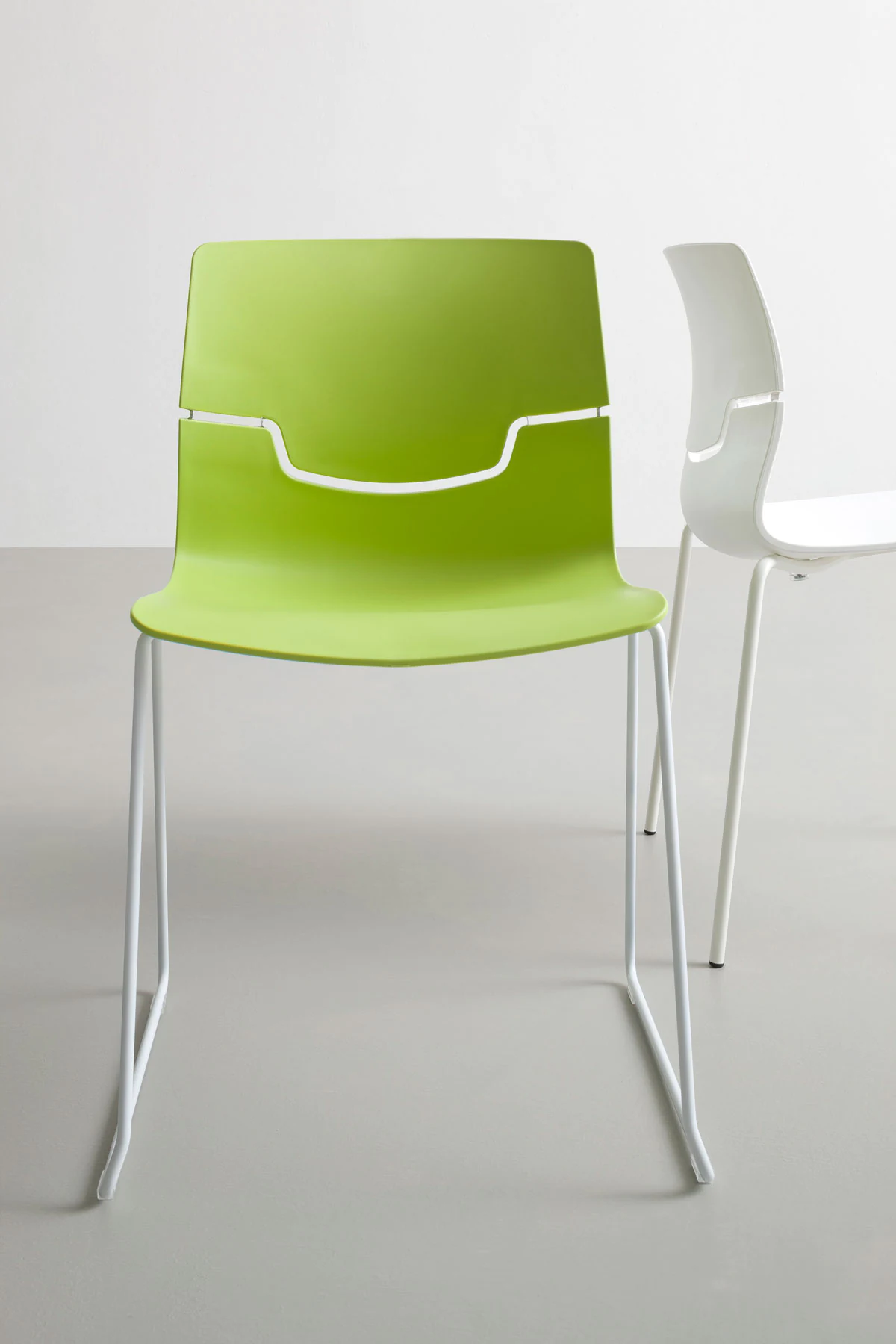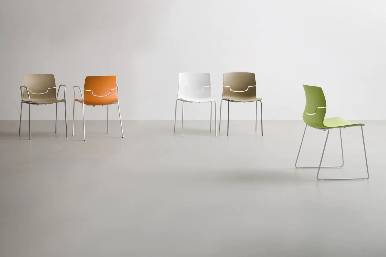 The design of slot chairs creates the feeling of a back suspended “in the air”.