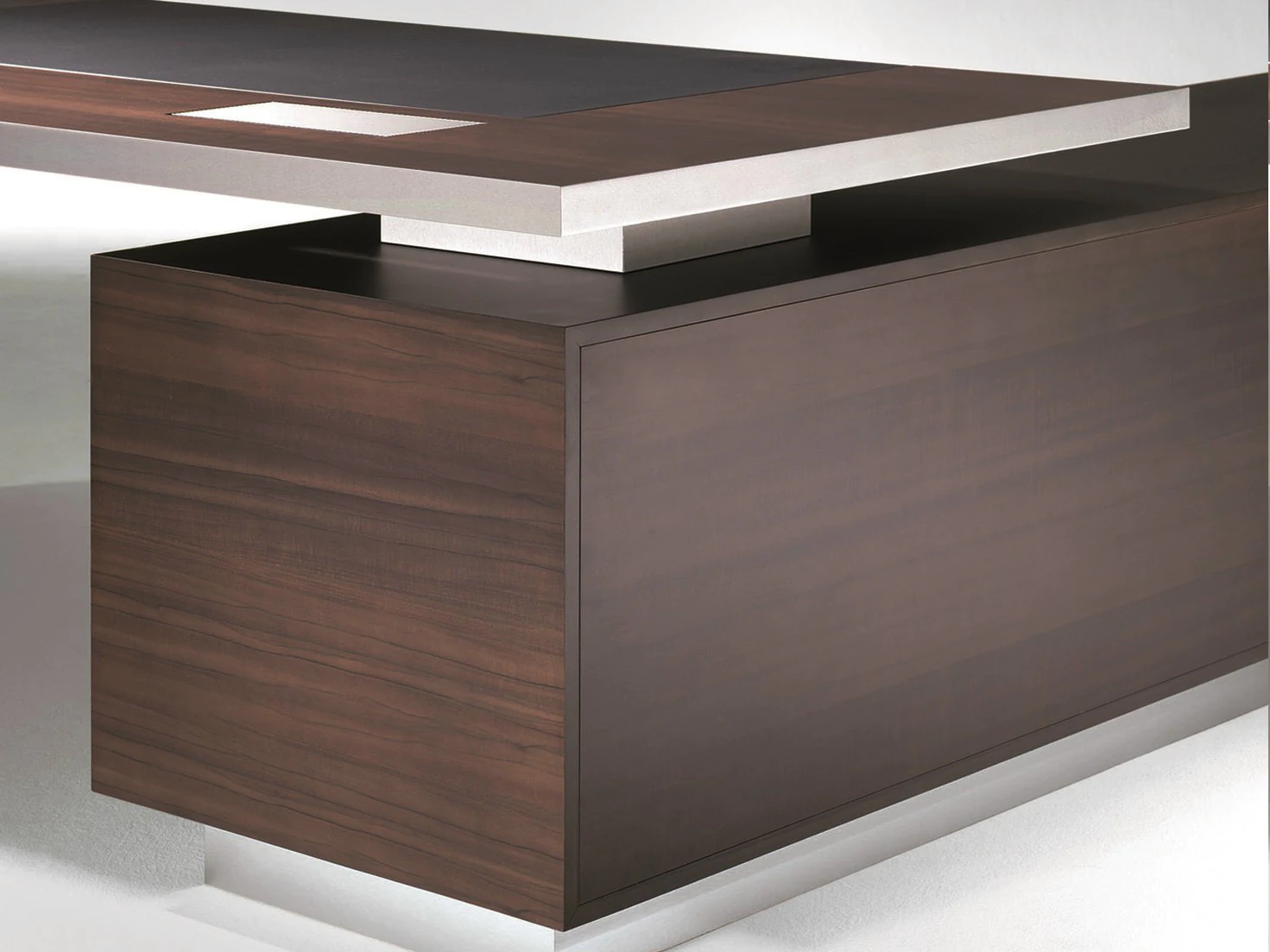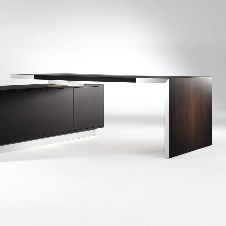 Solid solid precious wood, combined with aluminum and high-quality leather, creates a sense of security, balance and majestic tranquility. The strong foundation and aesthetic forms of the collection speak for themselves, radiating trust and confidence.