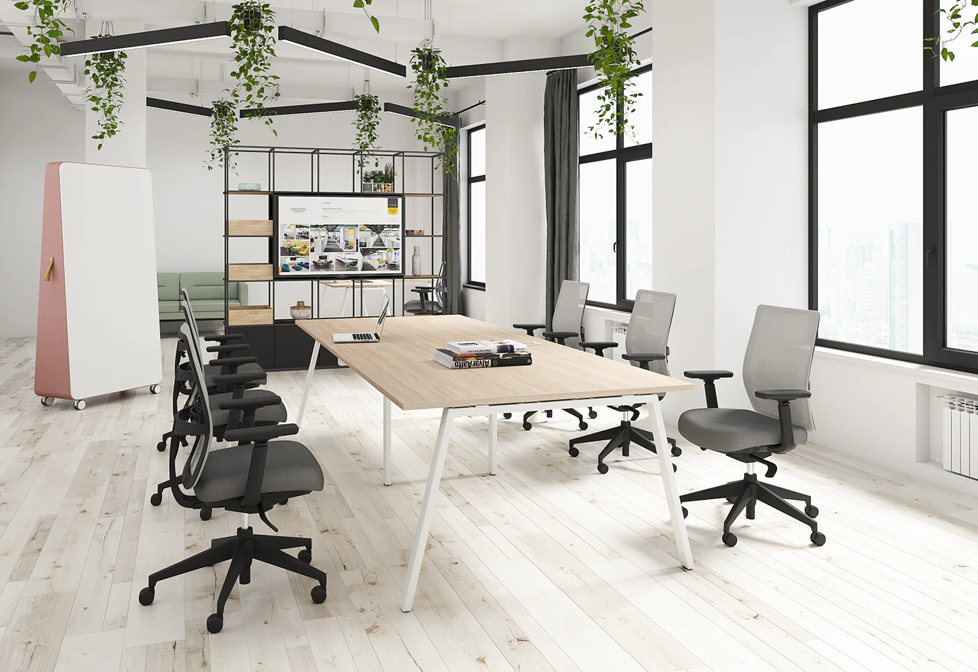 Team office tables in the new 75cm high tabletop sizes are a versatile solution for organizing teamwork and meetings.