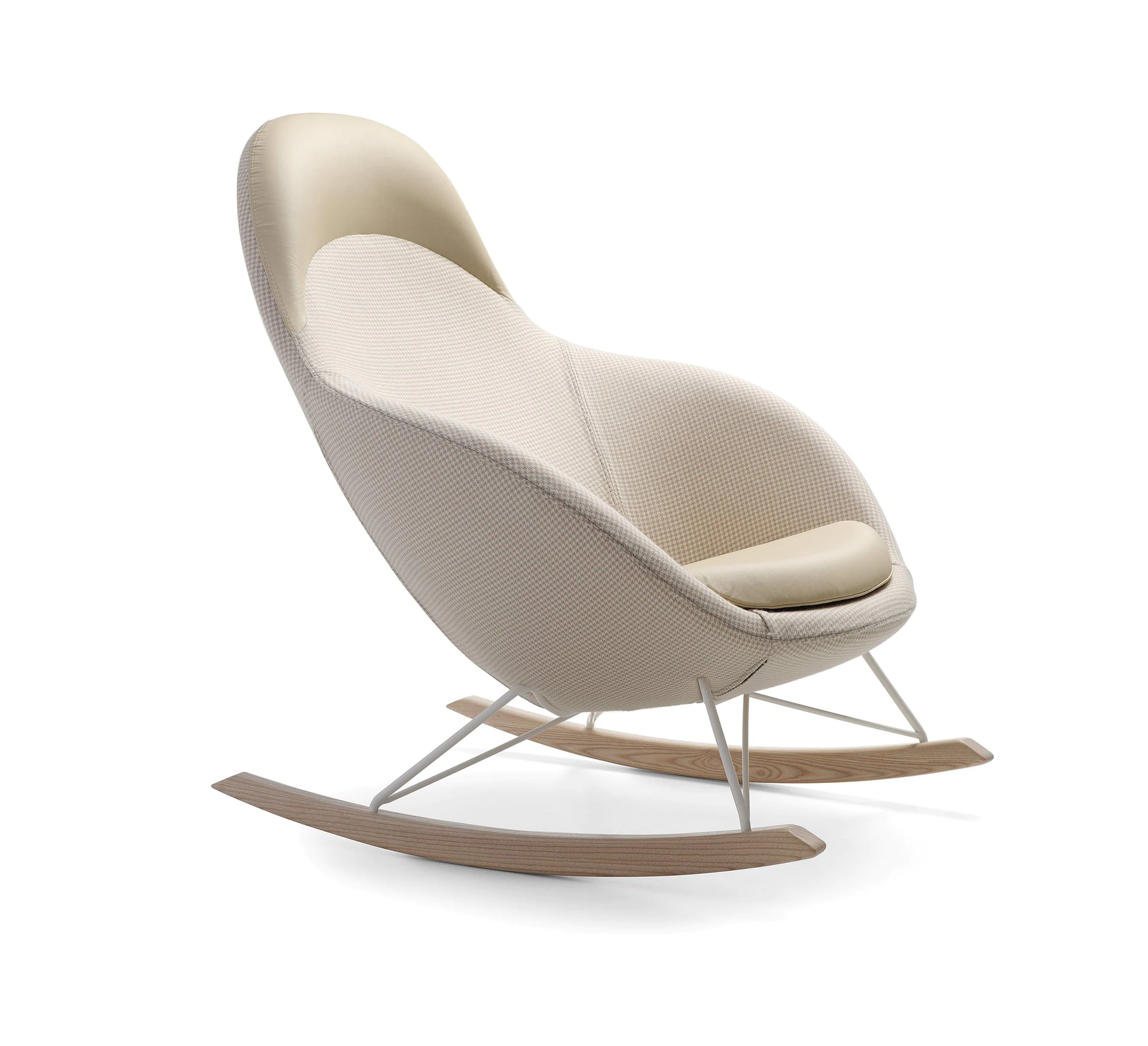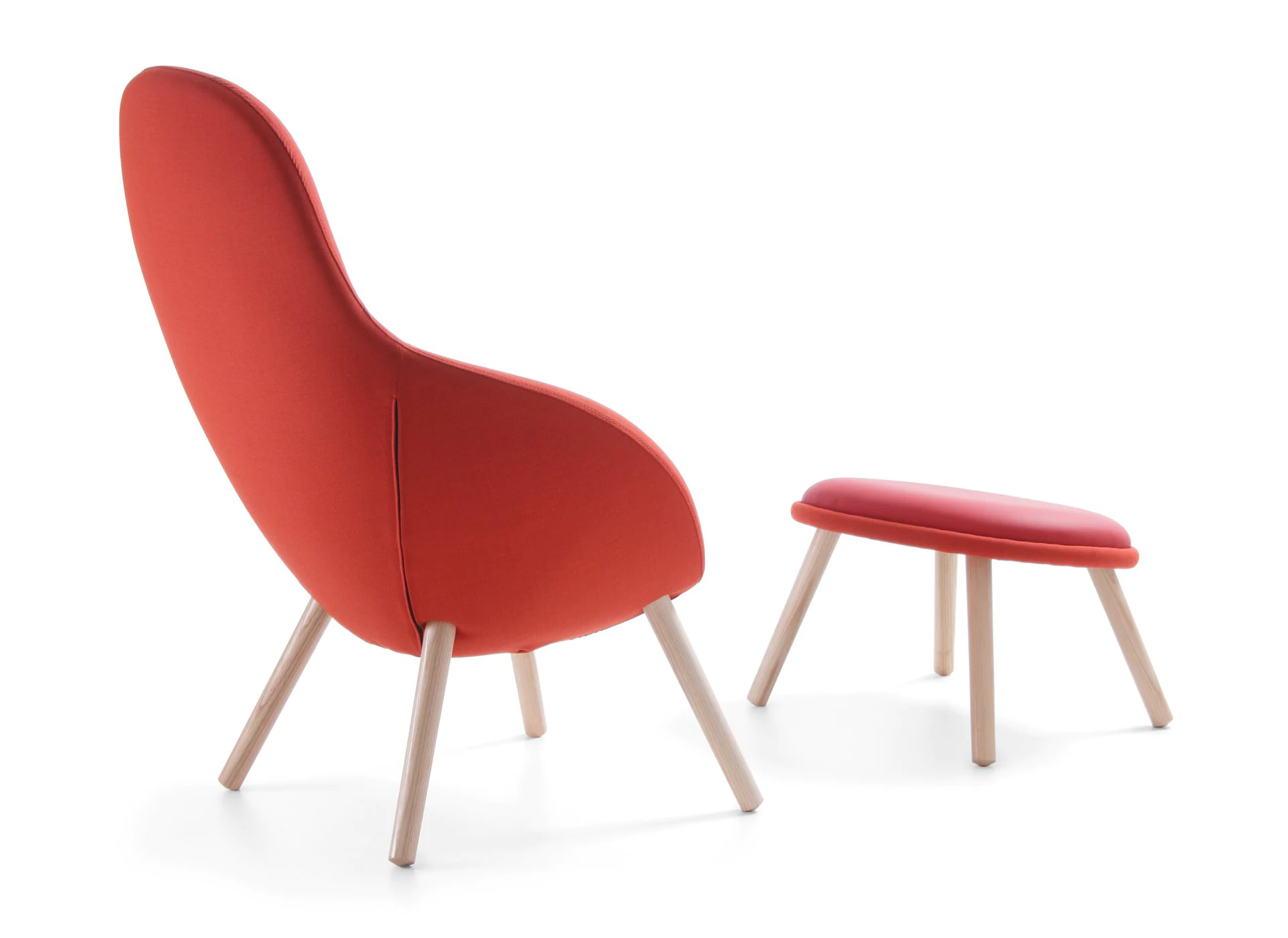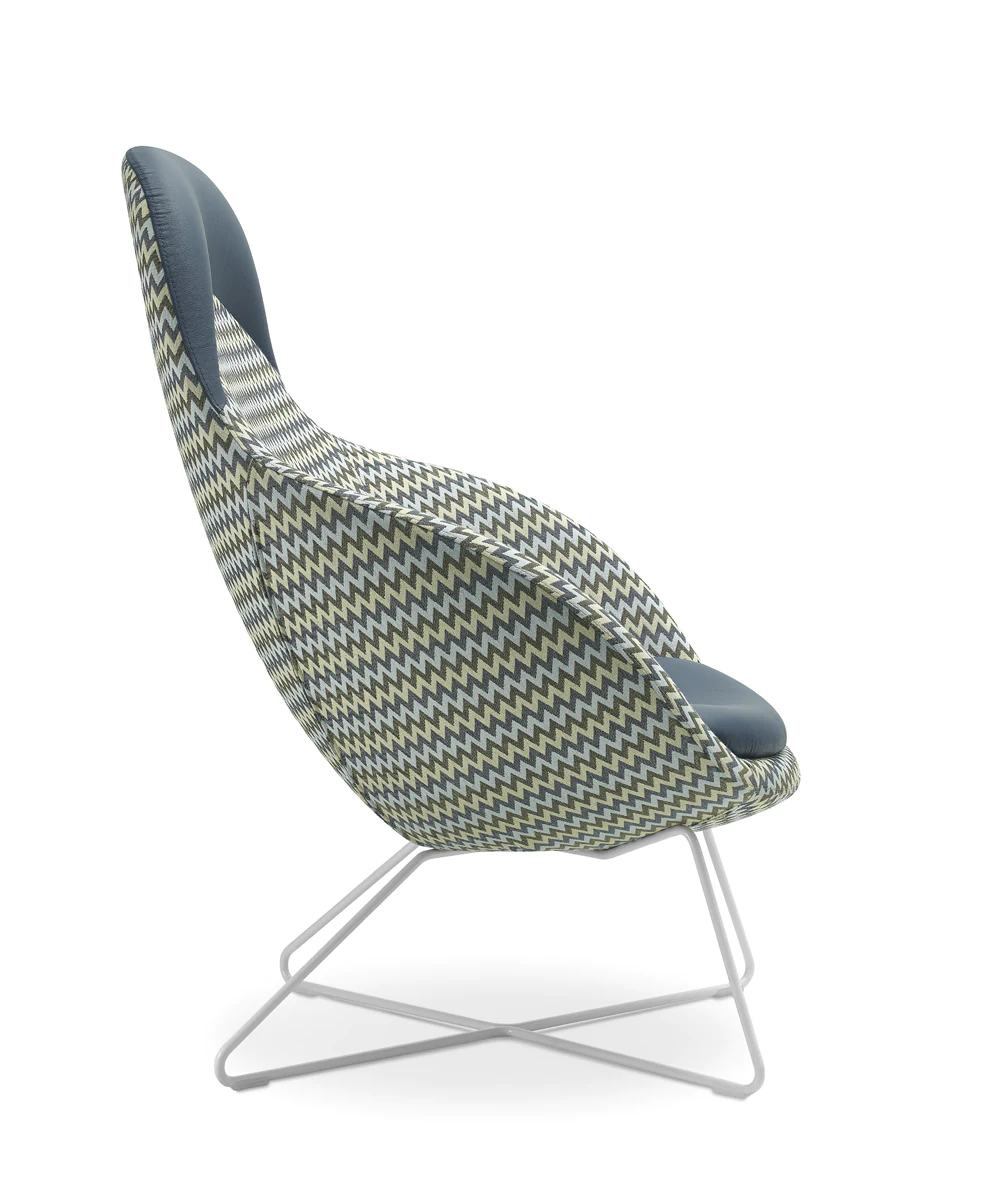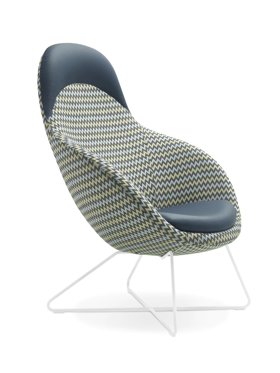 4 types of legs: metal legs or skids (powder-coated or chrome), solid ash wood legs (3 finishes) and skids. Various upholstery materials and colors.