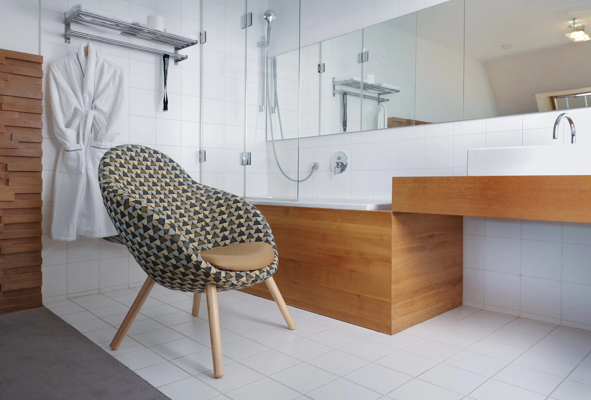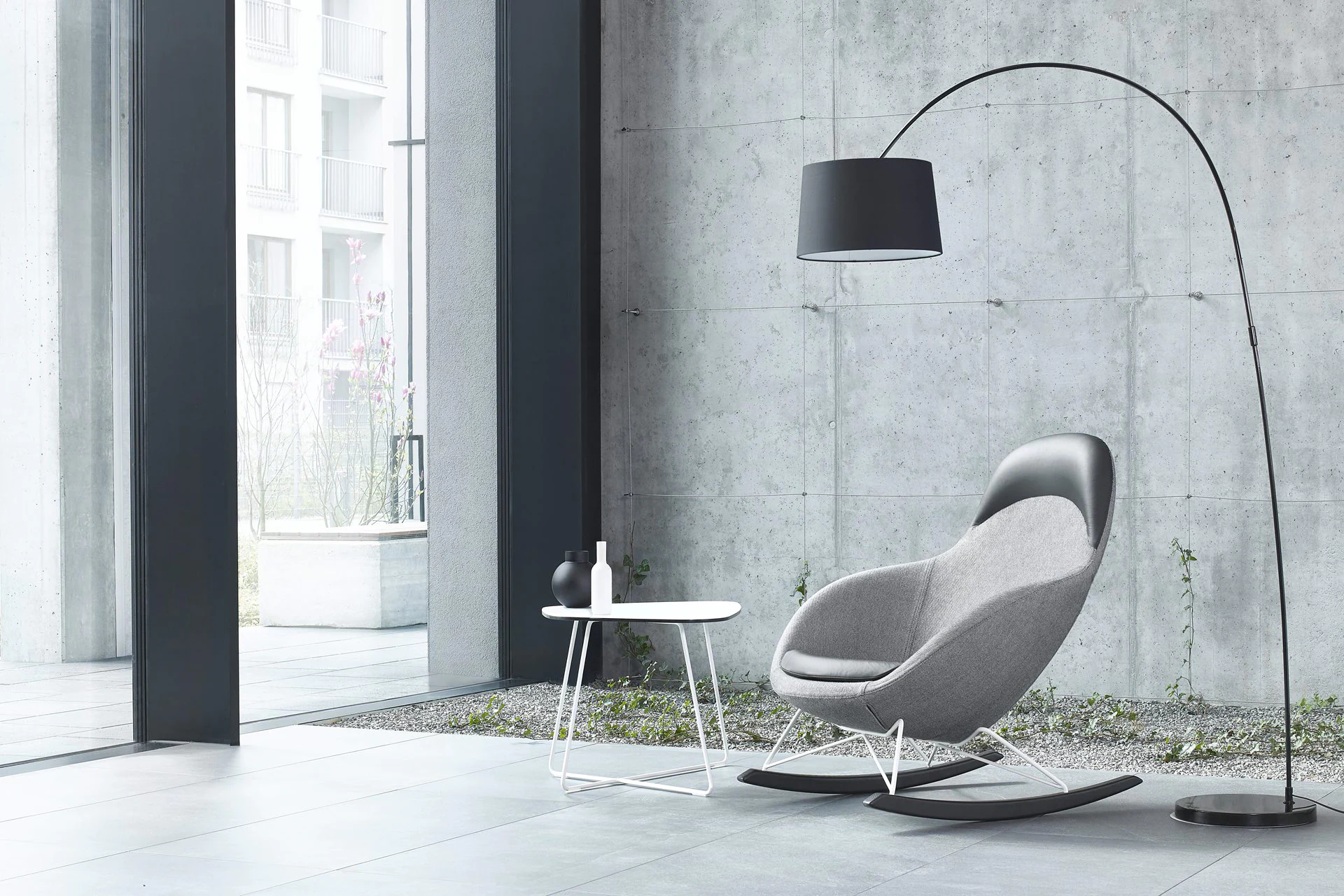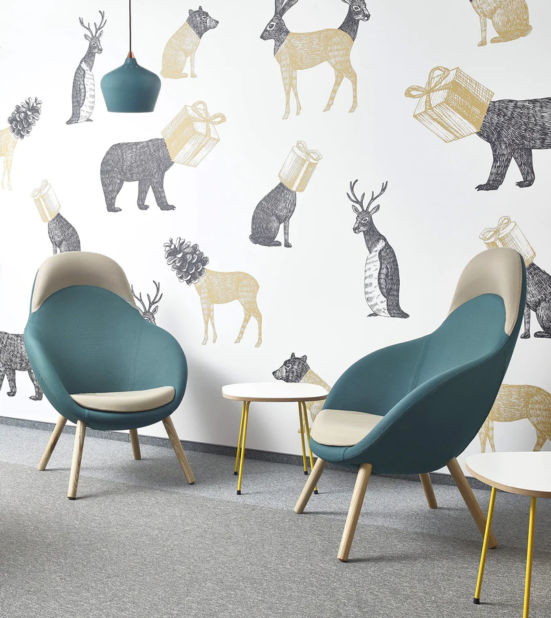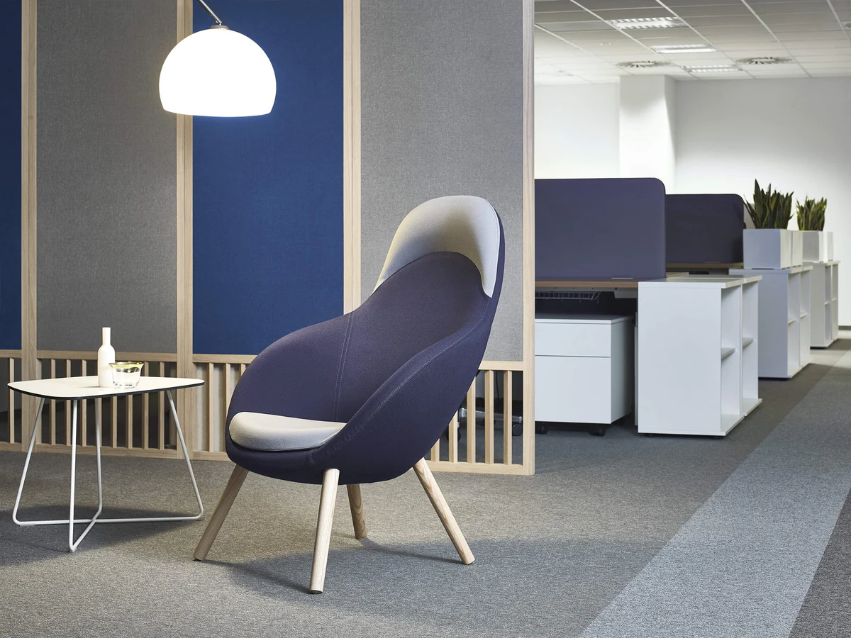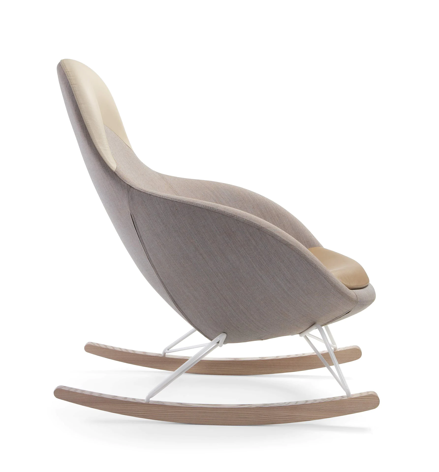 4 types of legs: metal legs or skids (powder-coated or chrome), solid ash wood legs (3 finishes) and skids. Various upholstery materials and colors.