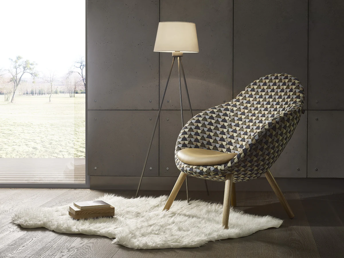 Simple and comfortable upholstered armchairs in traditional italian style.