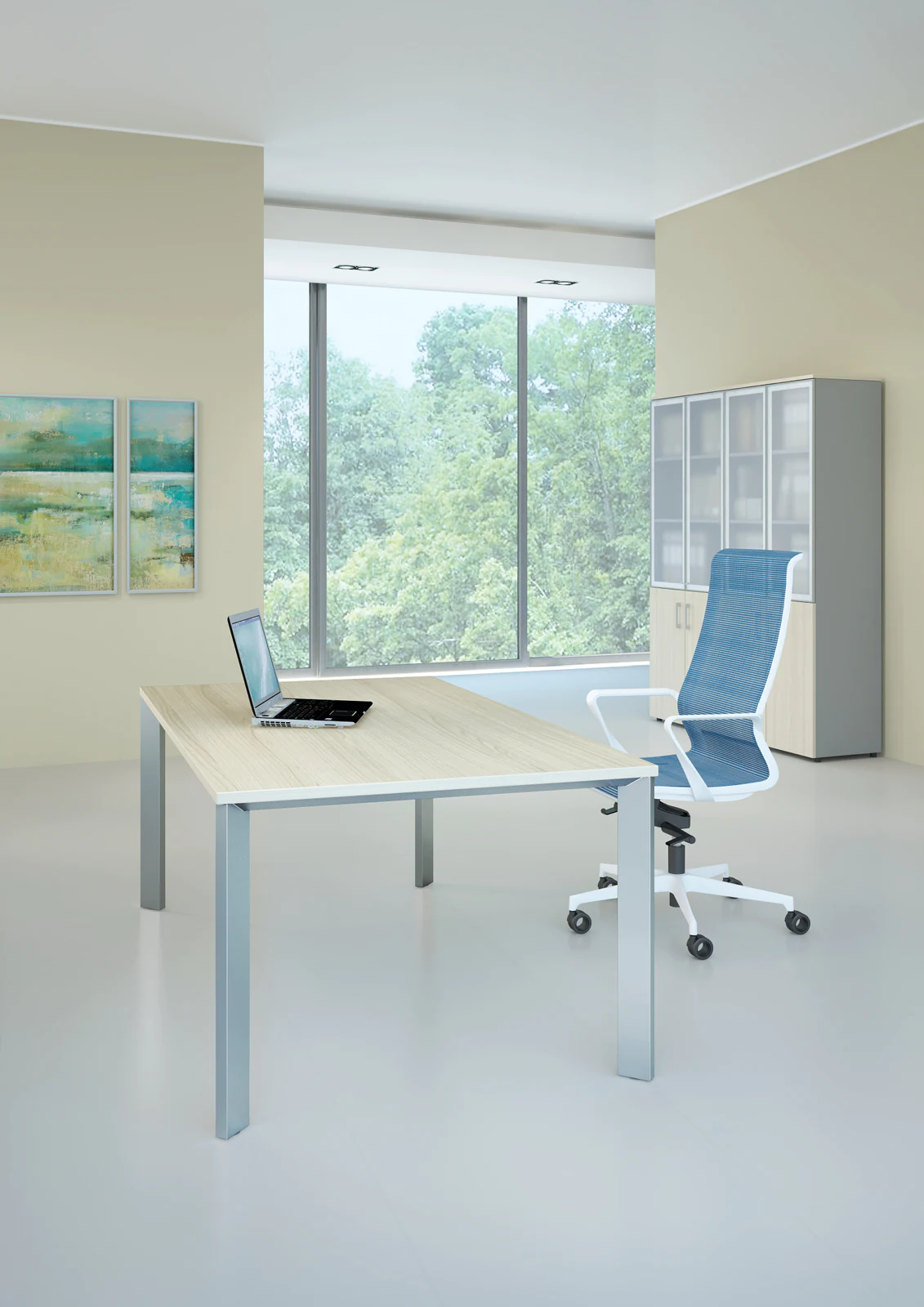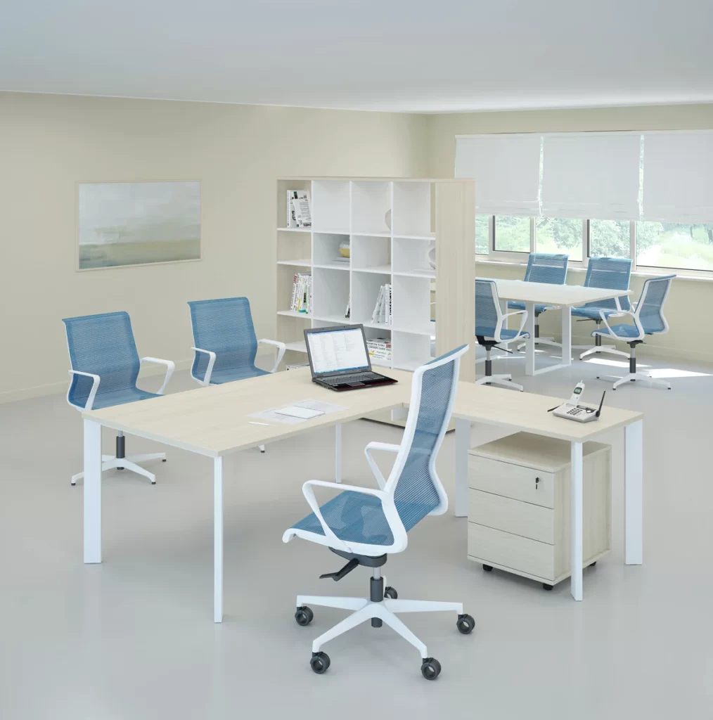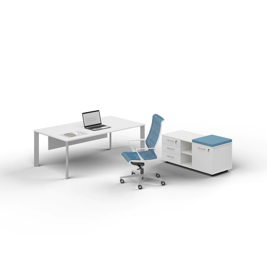 The original and strict design of the “manager” table of the virtus collection with legs located at an angle of 45° to the tabletop emphasizes the status of its owner and harmoniously complements the interior of a cabinet or open-plan office.